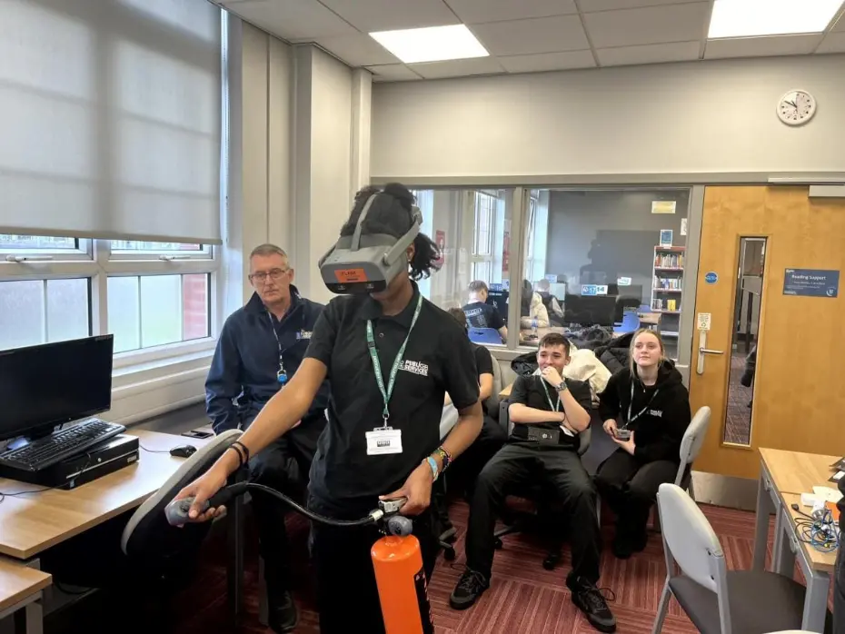 Students on the public service course (at Bury College) have been using a virtual reality extinguisher fire-fighting system which was donated to the college by FLAIM Systems, an international emergency training company.