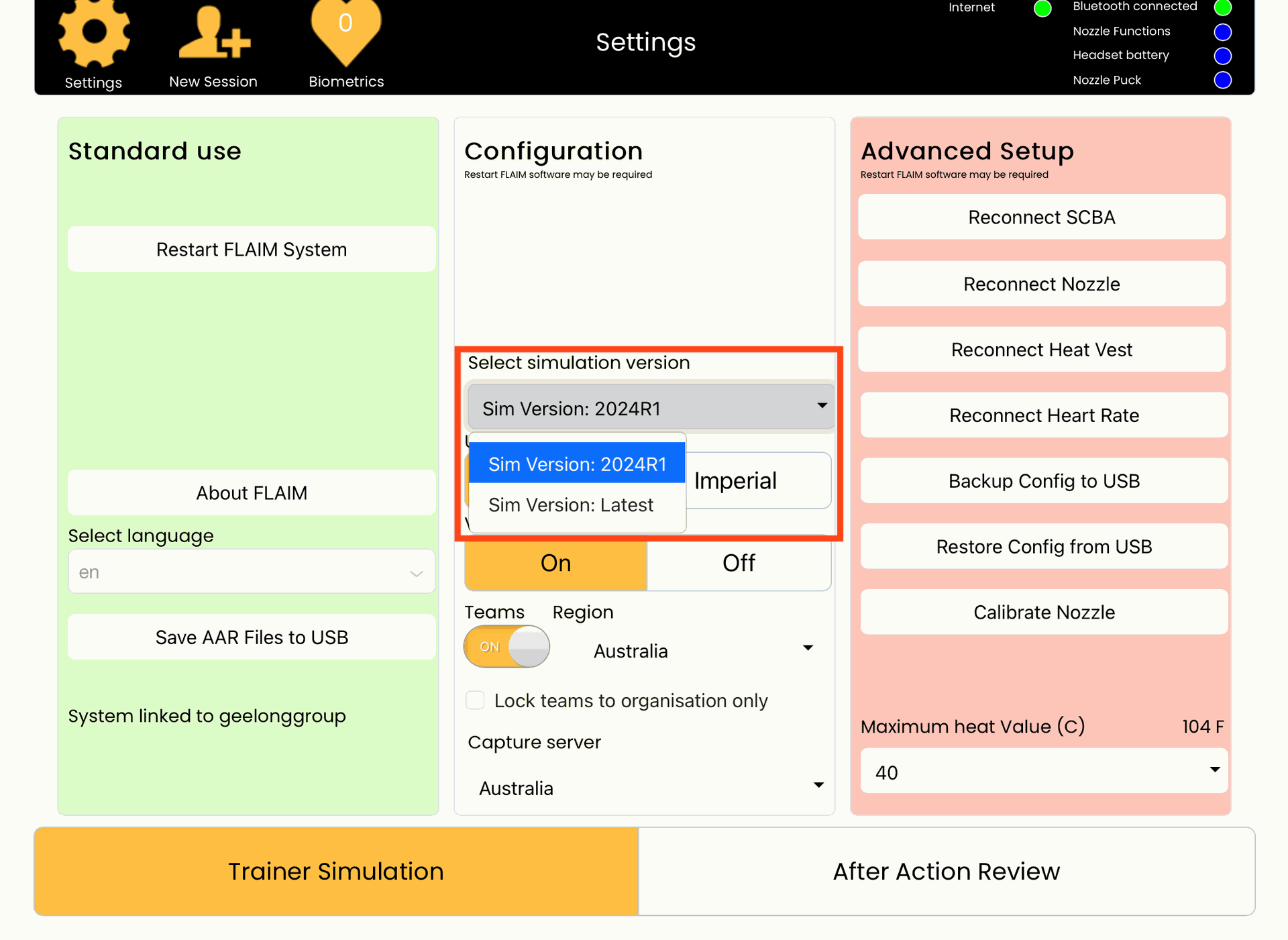 4. Important: To ensure full compatibility between systems, each user must be running the latest FLAIM Trainer software version and be connected to the same Capture Server.