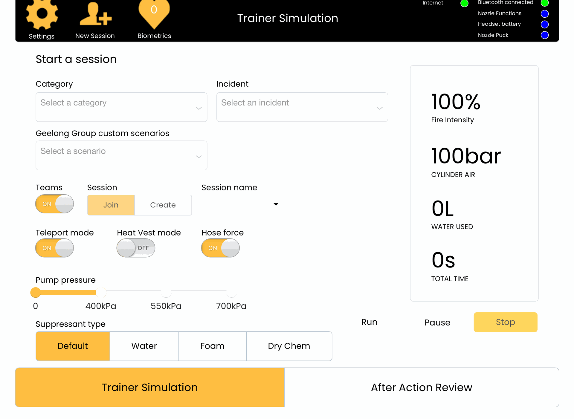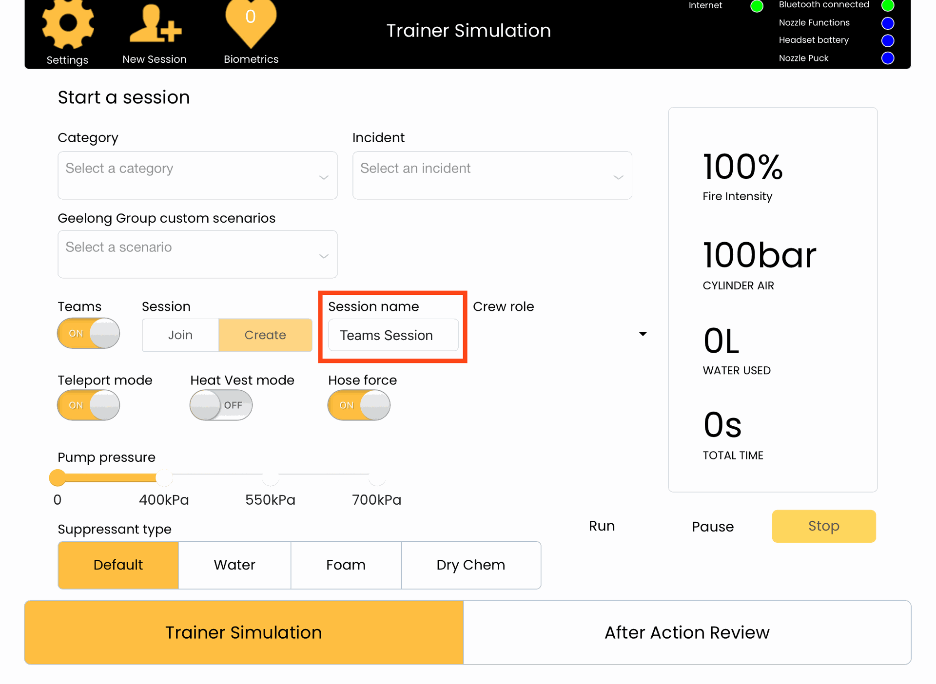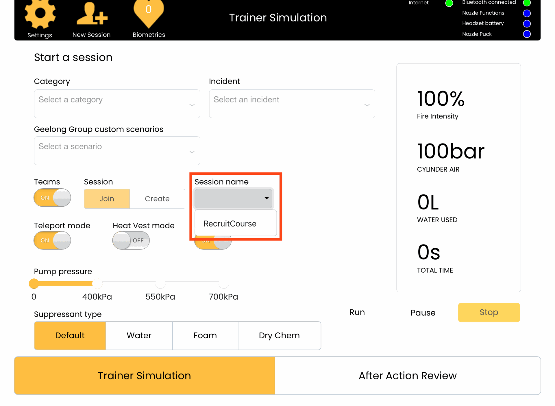 8. Press the yellow Trainer Simulation button to save your changes and return to the Session page.
