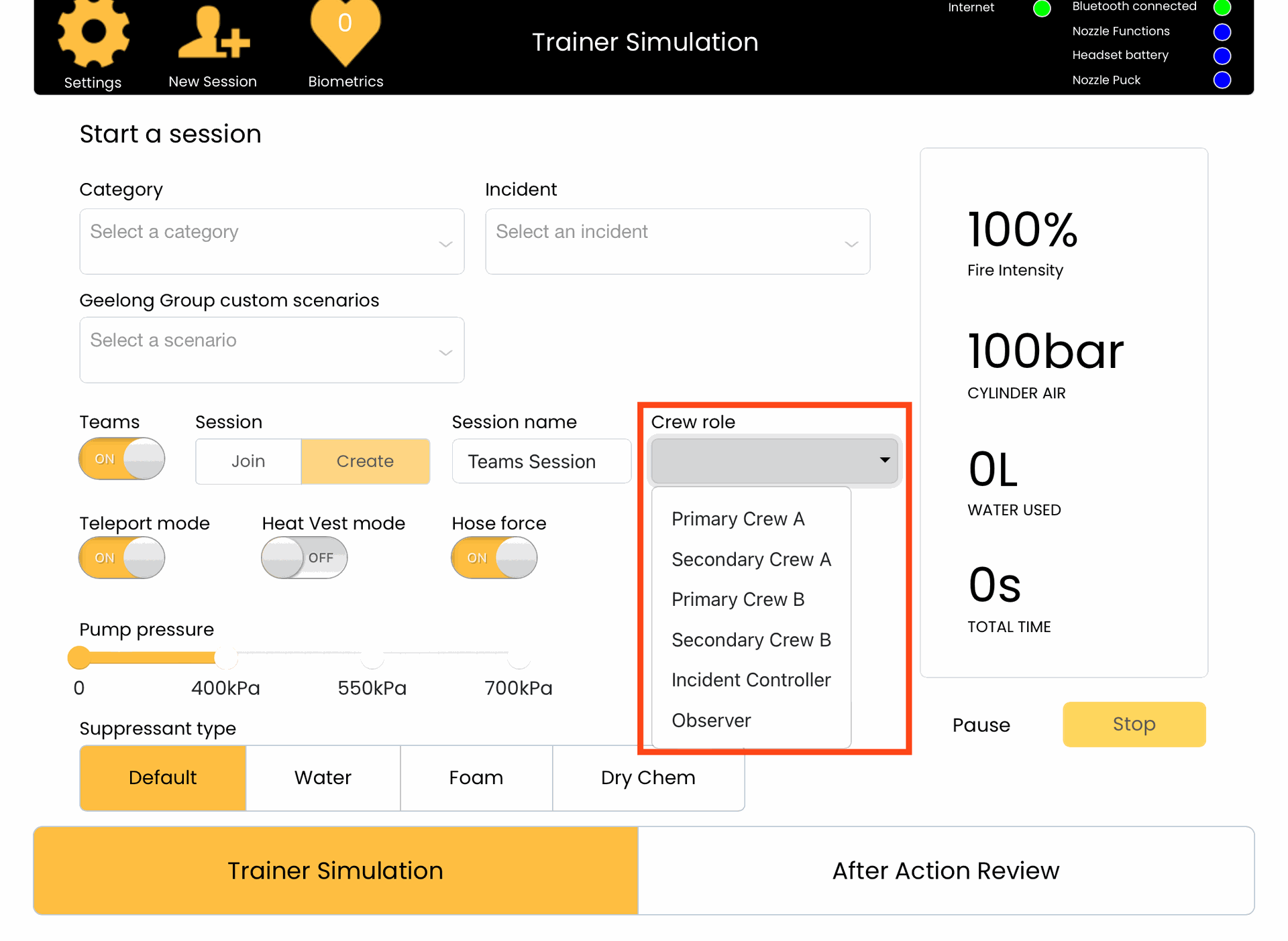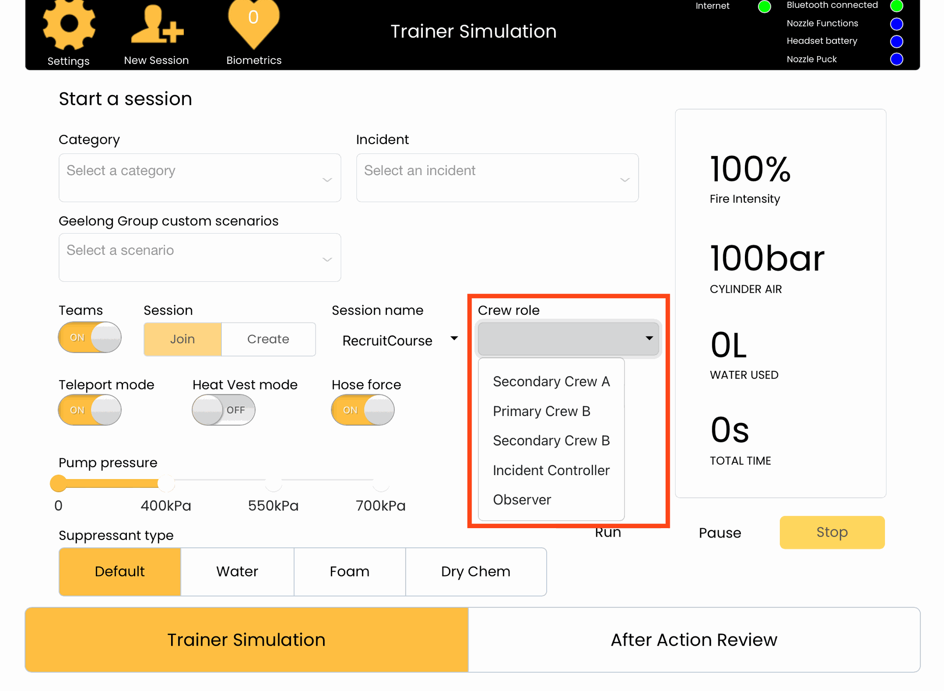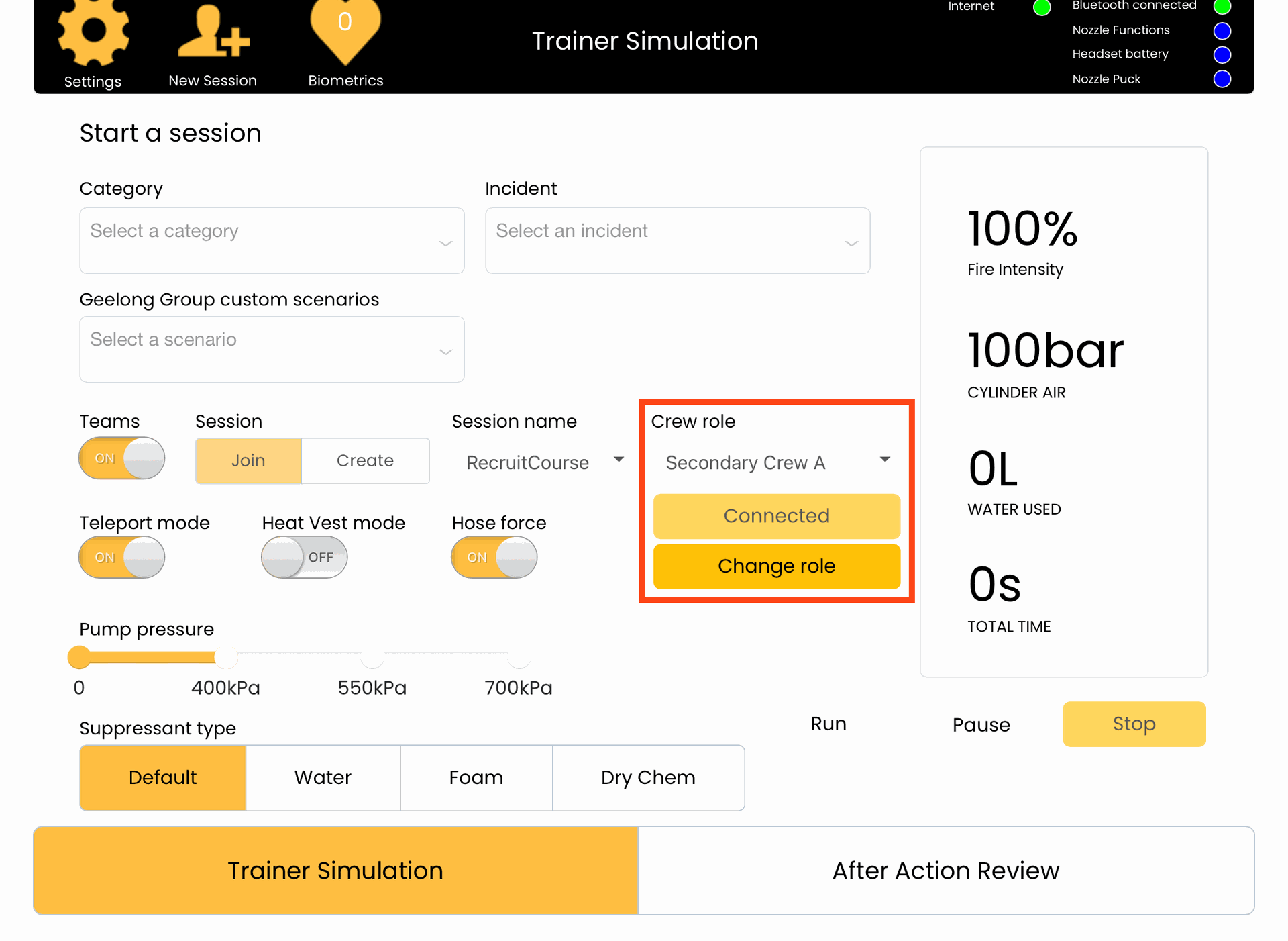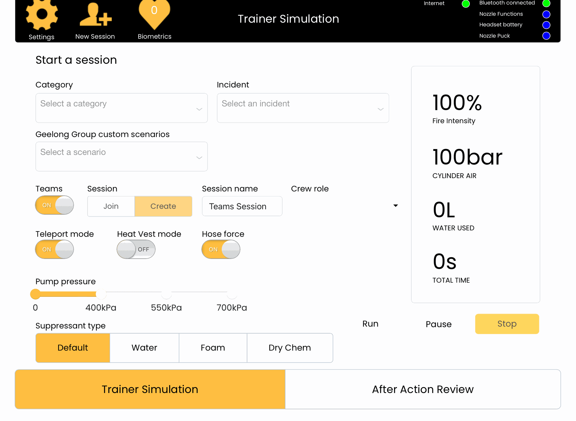 8. Press the yellow Trainer Simulation button to save your changes and return to the Session page.